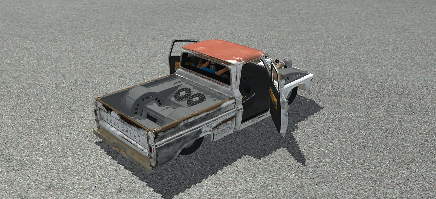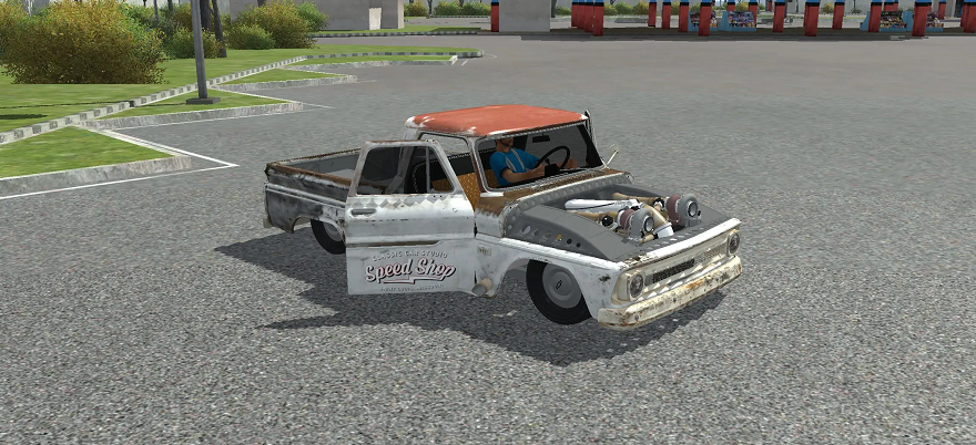 Bodi pickup ini mempertahankan garis tegas khas mobil Amerika tahun 60-an. Kap mesin panjang, kabin sederhana, dan bak belakang berbentuk kotak membuat tampilannya langsung dikenali sebagai pickup klasik. Di BUSSID, skala bodinya terasa pas, tidak terlalu besar dan tidak tampak kerdil.