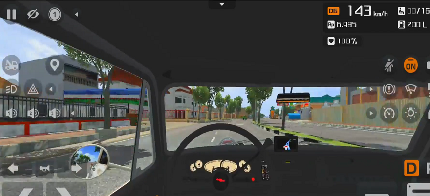 Sudut pandang kamera di dalam kabin terasa nyaman untuk penggunaan harian di BUSSID. Pandangan ke depan cukup luas, sehingga tidak menyulitkan saat manuver di jalan sempit atau saat parkir.